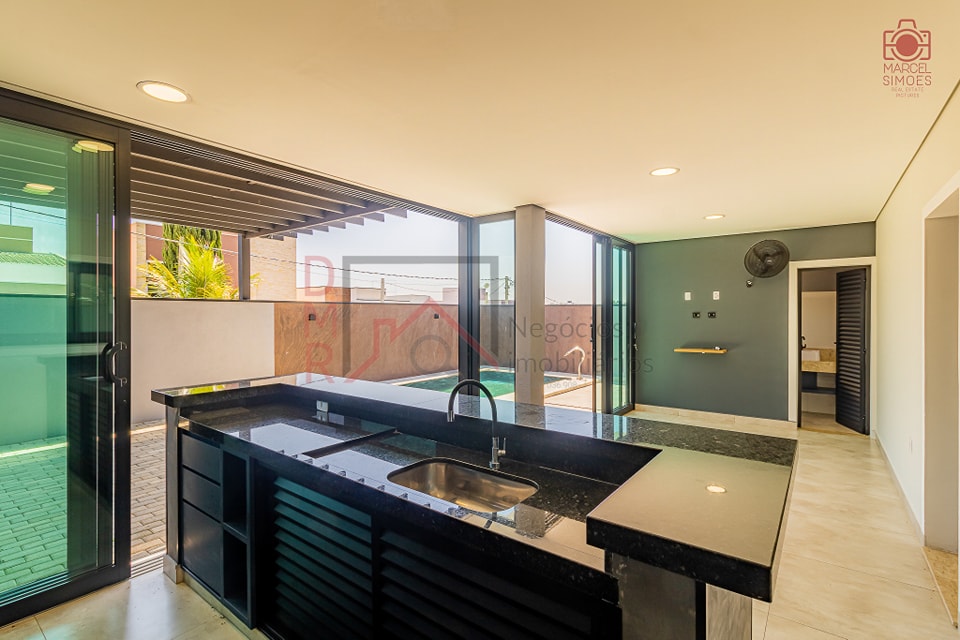 – Ampla e completa área gourmet com churrasqueira, bancada, cooktop e salão de festas fechado por vidros com lavabo para as visitas;